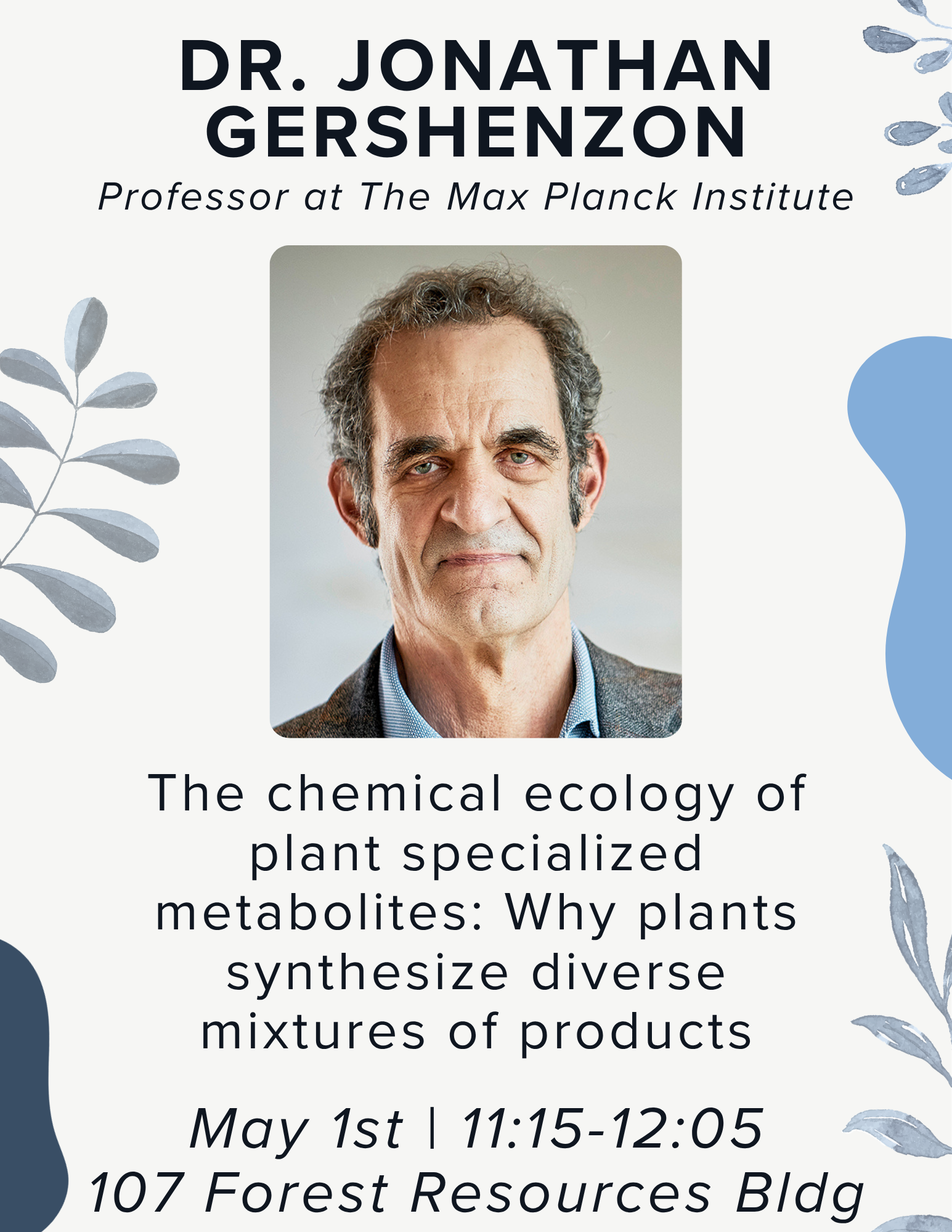 - This week we have Dr. Jonathan Gershenzon, a Professor at The Max Planck Institute, as he presents his seminar titled "The chemical ecology of plant specialized metabolites: Why plants synthesize diverse mixtures of products"
