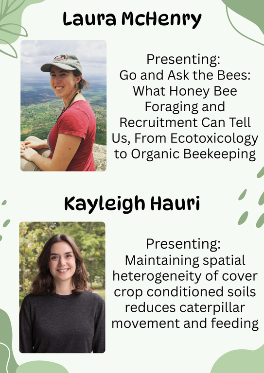 Join us as we have Kayleigh Hauri from the Ali Lab and Laura McHenry from the López-Uribe Lab presenting their research.