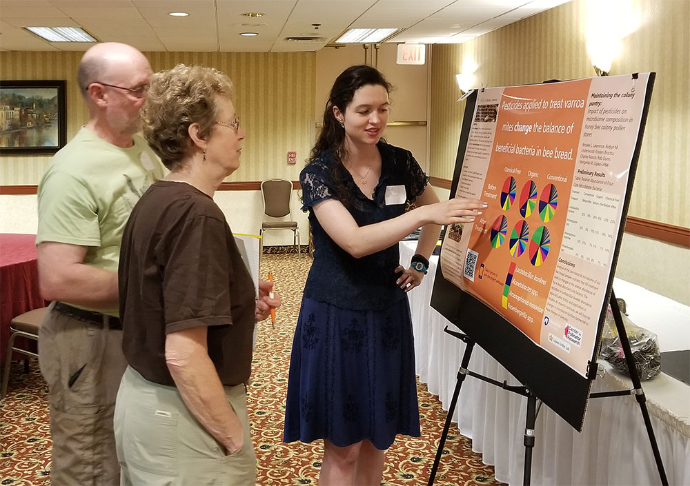 Brooke Lawrence presents her research poster titled “Maintaining The Colony Pantry: Impact Of Pesticides On Microbiome-Mediated Pollen Preservation In Honey Bee Colonies” to participants at the 2nd Pollinator In-service Meeting. Photo by Shelby Kilpatrick.