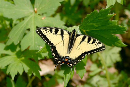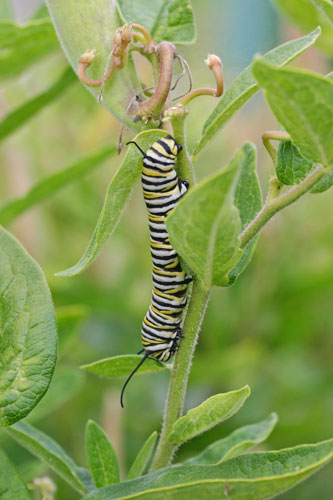 Monarch caterpillar on Asclepias tuberosa, Aug. 2007