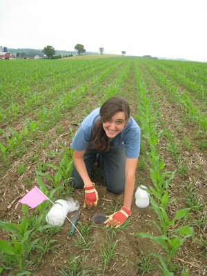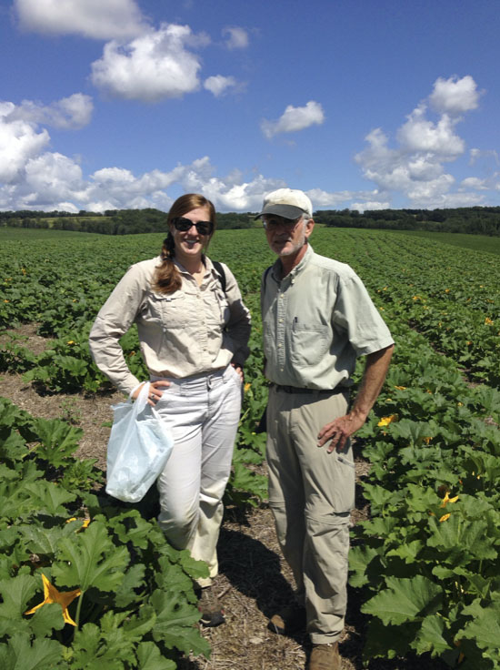 Dr. Shelby Fleischer and master’s student Carley McGrady in a pumpkin field.