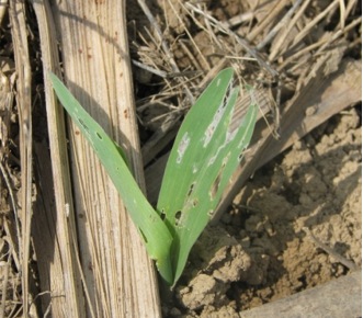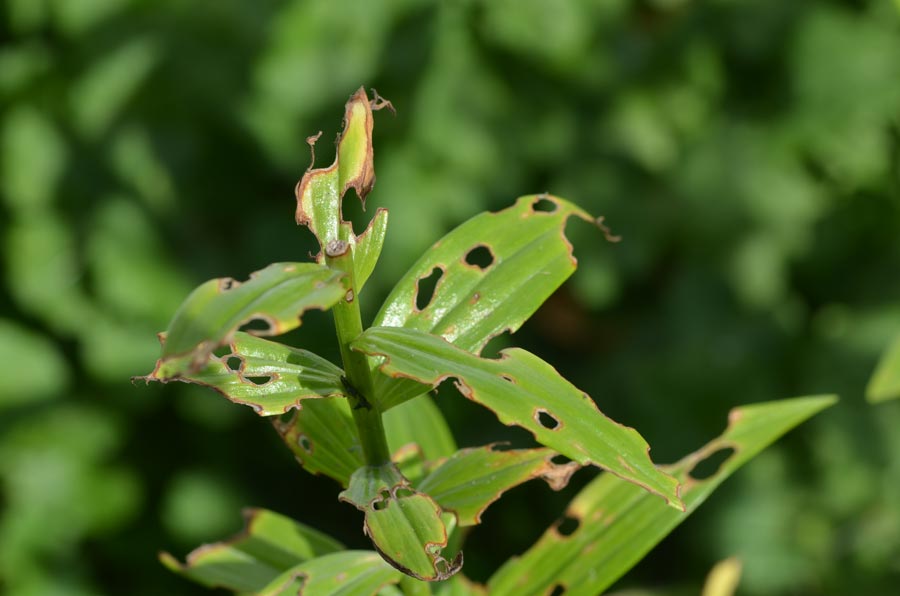 Foliar damage caused by the larval stage of the omnivorous leafroller