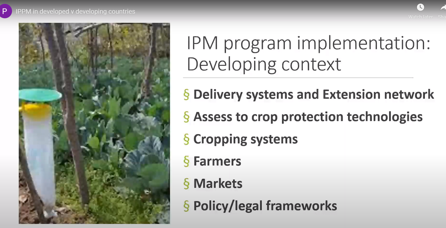 Dr. Sulav Paudel, is a Post-Doctoral Scientist at AgResearch, Hamilton, New Zealand, with direct experience in developing and implementing IPM in developing countries (and is largely focused on South East Asia). He emphasizes that many of the challenges growers in developing countries face using IPM in their operations are limited by the delivery system and extension network, access to crop protection technologies, unique cropping systems, markets, and finally policy/legal frameworks.